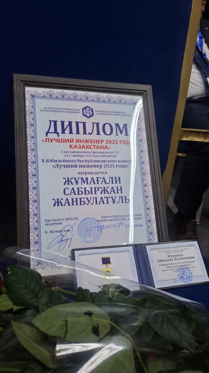 Бүгін Қазақстан Республикасының Ұлттық инженерлік академиясы «Жылдың үздік инженері – 2025» республикалық байқауының қорытындыларын жариялады. Сабыржан Жұмағали әріптесіміз «Жылдың үздік инженері» атағына ие болғаны туралы үлкен қуанышпен хабарлаймыз! Құттықтаймыз, Сабыржан! Бұл – сенің кәсіби біліктілігіңнің, табандылығыңның және Институтымыздың дамуына қосқан үлесіңнің лайықты бағасы. Саған жаңа жетістіктер, жарқын жобалар және толағай табыстар тілейміз!